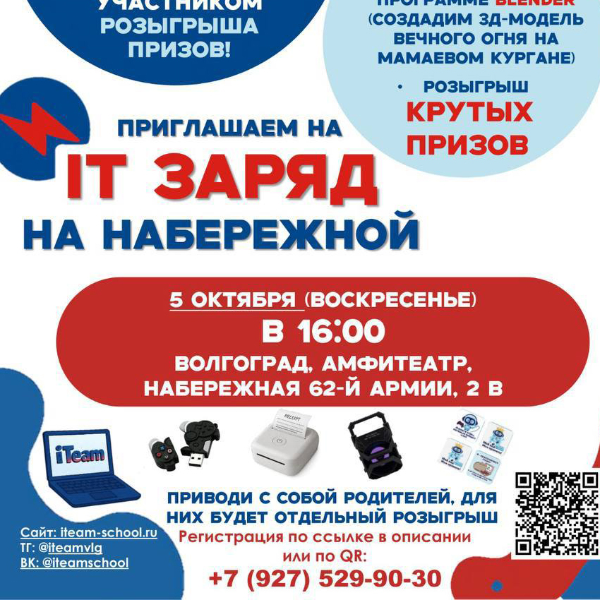 Приглашаем детей от 8 до 13 лет вместе с родителями на уникальное мероприятие “IT заряд на Набережной”
