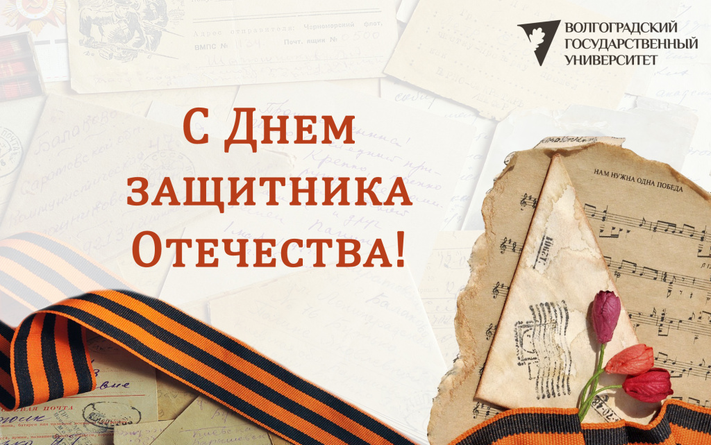 Поздравление ректора ВолГУ А.Э. Калининой с Днем защитника Отечества