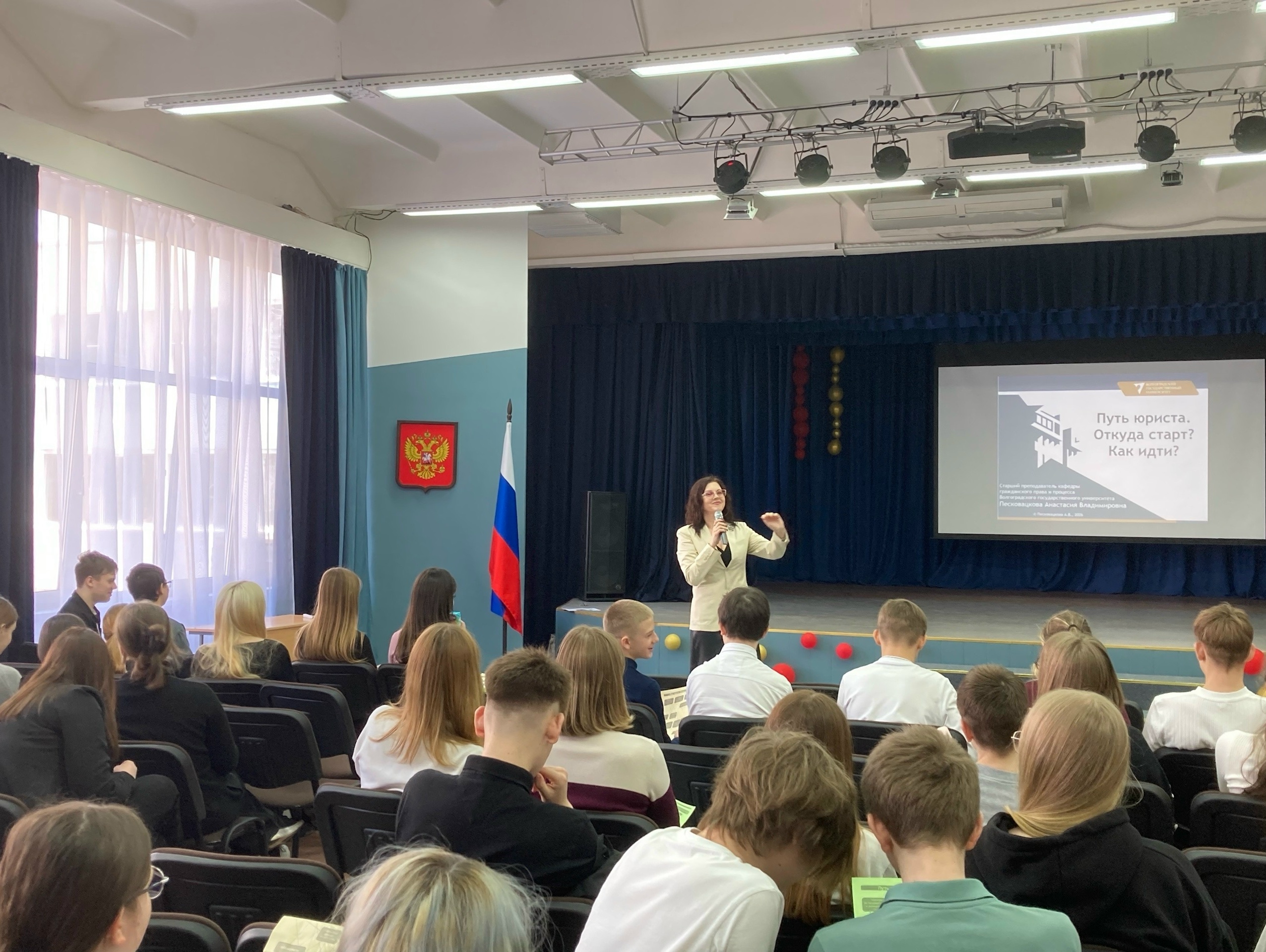 Именно с такого вопроса начала свое выступление старший преподаватель кафедры гражданского права и процесса Волгоградского государственного университета Анастасия Владимировна Песковацкова на встрече с учащимися Гимназии № 7 г. Волгограда 25 марта.